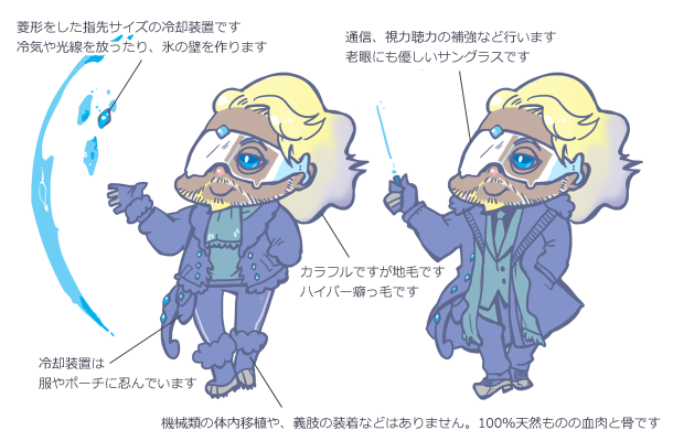 冷却技術を使った遠距離攻撃、足止め、機械類のクールダウンなどを行う。